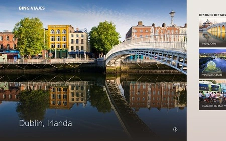 Bing Viajes es una de las aplicaciones más completas de las que vienen instaladas por defecto en Windows 8. Con ella, podremos no solo ver información sobre diferentes destinos turísticos del todo el mundo, sino que también tendremos la oportunidad de buscar vuelos, lugares de interés en ese sitio, restaurantes, hoteles, información meteorológica, fotografías, panorámicas, etc.